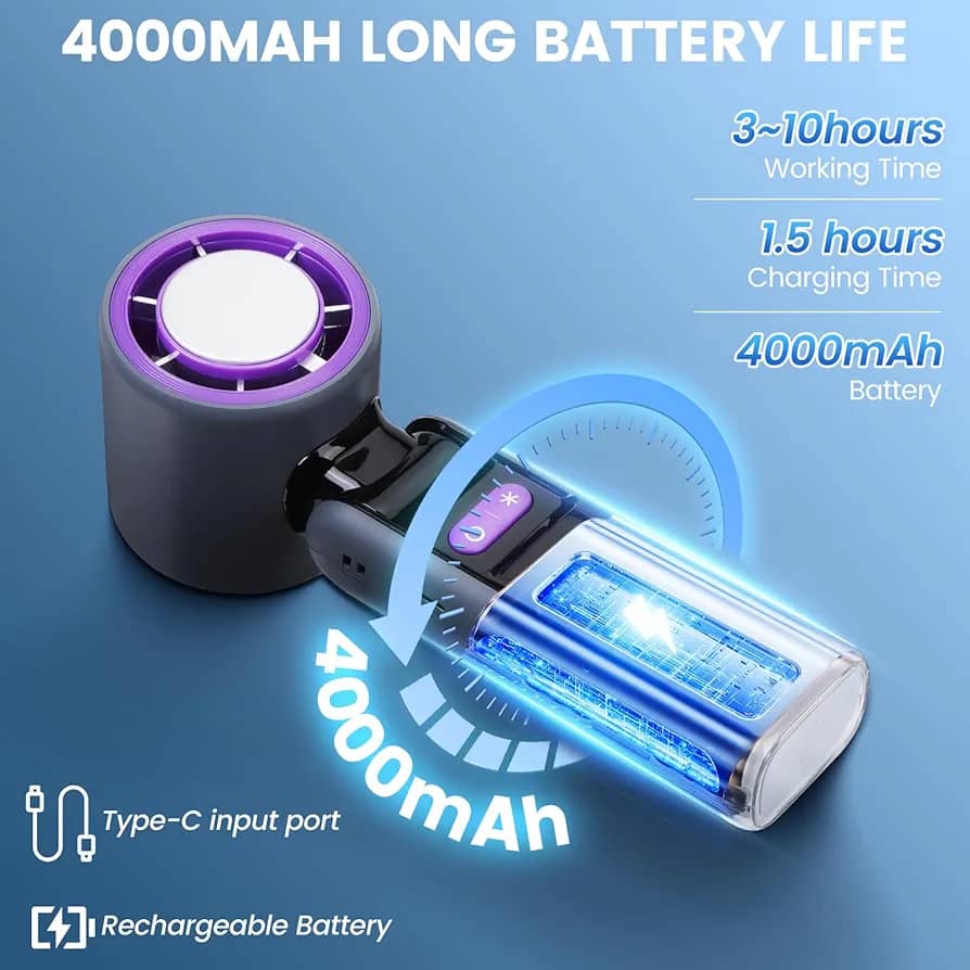 مجهز به باتری داخلی با ظرفیت بالا که از طریق درگاه USB-C شارژ میشود. پس از شارژ کامل، چندین ساعت خنکی بیوقفه را تجربه خواهید کرد.