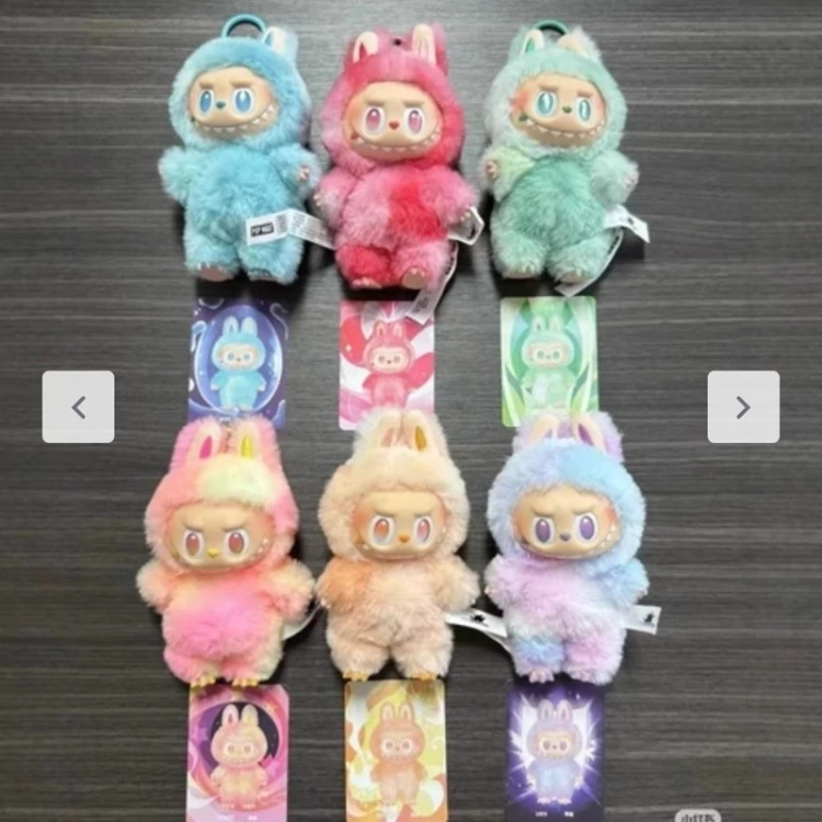 عروسکها از شخصیتهای "لابوبو" هستند که به شکل موجودات فانتزی با گوشهای خرگوشی و چهرههای خاص طراحی شدهاند و در رنگهای متنوعی مانند آبی، صورتی، سبز، و ترکیب رنگهای شاد (مانند صورتی-زرد و آبی-صورتی) ارائه شدهاند [13، 14].