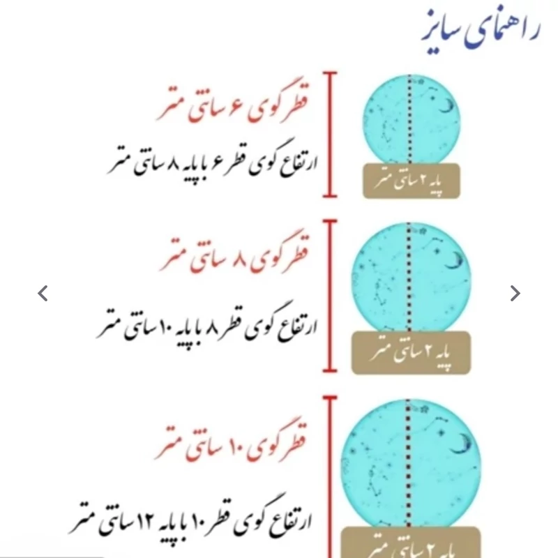 ارتفاع پایه 2 سانتیمتر است و ارتفاع گوی با پایه 8 سانتیمتر است.